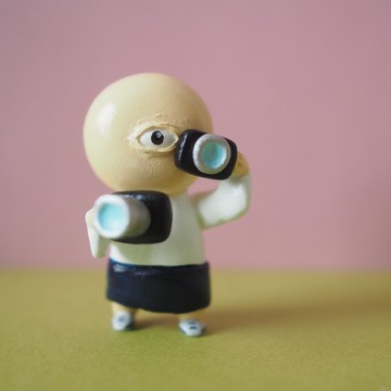 數位單眼相機小子的夜間亮相據說被「DSLR Kid」(一個手持數位單眼相機的獨眼妖怪)拍照的人會在一周內徹底禿頭。鎮上的人們開始竊竊私語:「那個頭閃閃發亮的傢伙……被單反小子抓到了嗎?」“或者那隻是……自然禿頭?”恐懼開始漸漸侵蝕每個人的心。大多數人都盡量避免晚上外出。但有一天晚上,我必須工作到很晚,當我到達當地的車站時,天色已經完全黑了。我盡可能走有路燈的街道,但有一段路──大約十公尺長──一片漆黑。當我開始慢跑穿過它時——有個人站在那裡。「對不起,」一個聲音說。我轉頭看去。一隻眼睛。手裡拿著相機。我嚇得渾身僵住了。我必須在他拍照之前跑開!但我的腿卻無法動。「我可以給你拍張照片嗎?」他張開雙手問。他伸出拇指和食指來構圖。我想跑。但我還是無法動彈。單反小子調整了姿勢,切換到垂直框架,尋找更好的角度。就在我差點倒在地上的時候——咔噠,咔噠,咔噠。他拍了照片。突然間,我又能動了。我頭也不回地從他身邊衝了過去。我聽見他那細小的聲音漸漸遠去:“等待-!”然後一片寂靜。儘管被拍照了,但我沒有禿頭。顯然,在漆黑一片的環境中,你需要有人保持同一個姿勢 30 秒才能拍出好照片。所以最後,鎮上全都是禿頭…100%純天然。尺寸:H60mm