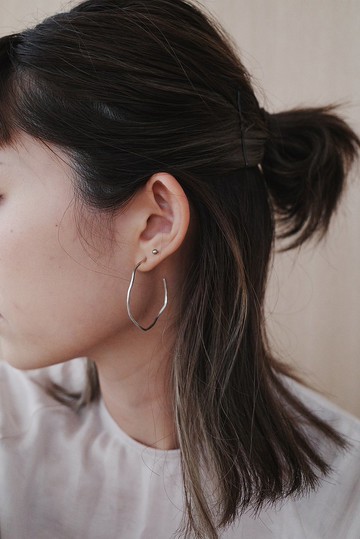 稜角圈・純銀耳環