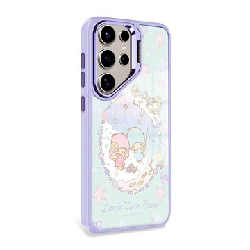 三麗鷗S25/S24/S23 軍規防摔合金框隱形立架手機殼-雲端雙子星-紫