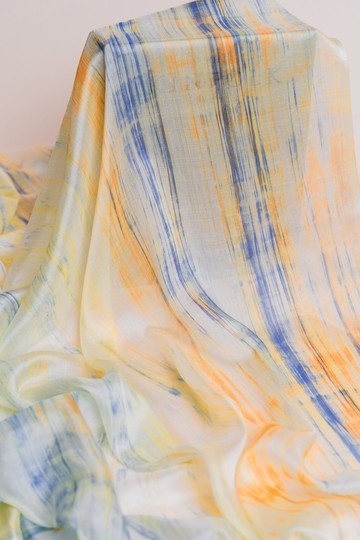 100% 桑蠶絲圍巾 – 手工染色,輕盈,奶油黃彩虹色