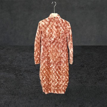 二手 古董訂製 暗粉色 織紋 開衩 略彈性 長袖 旗袍 CA410