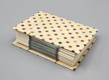 Coptic Weave 手縫記事本,硬殼點點設計,書邊為青藍色/棕色。