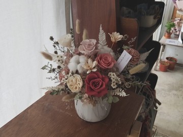 *如需指定到貨日期(宅配星期日休息)/印製卡片(20字內,字越多字級越小)下單時請在備註地方填寫│花禮尺寸│3朵永生花/寬高約25公分(花器直徑9.5高9.8公分)5朵永生花/約寬33高28cm含線條(花器直徑10高10.5公分)| 訂購須知 |煩請先告知送花/取花日期(如遇花材缺貨或是花況不佳的情況,設計師會以合適材料替換)| 配送方式 |全台宅配/離島除外(乾燥花會盡量的妥善包裝,在運送過程中難免會有掉落小碎花狀況是正常的喔^^)自取地點:台北市萬華區西寧南路82巷7-1號(西門捷運站1號出口步行3分鐘)自取請與我們聯繫| 保存方式 |保持乾燥/請勿噴水不凋花鑑賞期約1-2年,乾燥花鑑賞期約半年,請放置於通風/乾燥的環境並避免陽光直射以延長觀賞期。| ABOUT US |把花草帶進生活裡,豐富著在地球上的每一天。