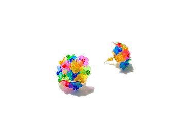 彩色小球花耳環