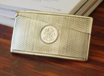 1904年之純銀名片盒/卡片盒。這類型的名片盒流行於18~19世紀,上層階級的紳士淑女社交及拜訪的隨身攜帶物品之一。名片通常是頭銜、姓名,有些人還會寫在地址。此物件是有一點弧狀感哦。以下為其印記-製造商(有GU字樣)船錨-城市(此物件為Birmingham)獅子圖案-純銀。字母e-可以辨別年份的。狀況很不錯。由於沒有擦得很亮,所以顏色有點深淺不一。會附上銀布給買家擦拭使用。8x4.4公分,厚度0.4公分。我還有一個DAMN GOOD VINTAGE設計館,這裡還有2000多樣商品,歡迎點閱:https://www.pinkoi.com/store/damngoodvintage古董飾品因為年份關係,請使用完後,放到夾鏈袋保存。勿戴著淋浴、游泳等水上活動。正常使用,壽命久久。