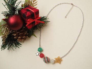 聖誕派對圍兜項鍊銀精緻鋪路鏡球星星星星圓球球條紋紅綠銀季