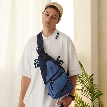 【金安德森】Even造型口袋拉鍊肩背包-深藍色