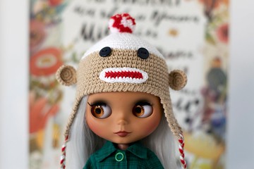 Blythe 猴子帽,Pullip 娃娃,針織帽,娃娃配飾,娃娃針織衫,娃娃帽