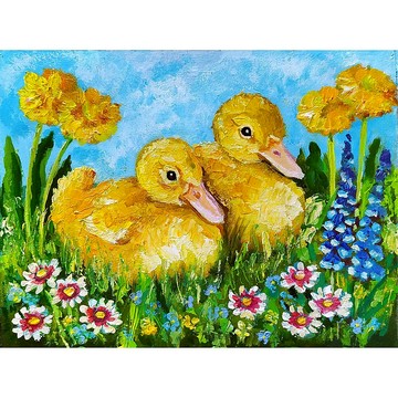 小鴨子畫是原創手工畫,不是印刷品。《花叢中的小鴨子》是用油畫顏料在3毫米厚的厚紙板上繪製的。一對鳥的畫作尺寸為 8 x 6 英寸或 20 x 15 厘米。我可以根據訂單寫一個更大尺寸的類似故事。兩隻鳥的畫是用畫筆和調色刀畫的,有大量的油畫筆觸,畫面表面不光滑。油畫《鮮花草地上的小鴨》將裝飾兒童房、臥室的一角,將是送給鳥奴的原創禮物。幾隻小鴨正在陽光明媚的花草甸上休息。圖片已準備好,我將在付款後 1-2 天內發送,並附上跟踪號碼以供跟踪。
