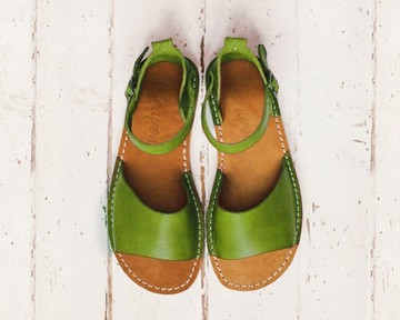 綠色涼鞋、綠色女士涼鞋、皮革涼鞋、女士涼鞋、夏季鞋、露趾涼鞋