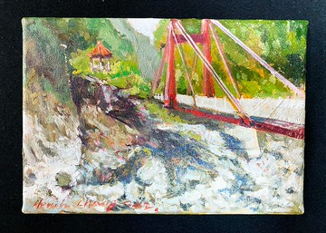 藝術品名稱:中橫慈母橋藝術品尺寸:22.5x15.5cm (無附畫框)藝術品媒材:油彩畫布藝術品年代:2012藝術家簡介:章恆欽 CHANG,Heng-Chin 1974-章恆欽,一位具有獨特風格與個人魅力的藝術家,擅長將生活中無形的甘苦點滴,藉由自身心靈的浪漫體驗,轉化成一幅幅色彩繽紛的藝術創作,以生動有力的線條筆觸與錯落有秩的塊面層次,巧妙的展現油畫媒材的特殊肌理。章恆欽的創作表現出一種超越時空如童話詩篇般的浪漫氛圍,彷彿將美好的一刻化成永恆。注意事項:(1) 因每台螢幕皆有些許色差,恕不接受因色差要求退換貨,請詳閱再下單喔!(2) 如需其他風格、內容、尺寸之作品,請來信詢問,謝謝!
