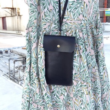 顏色:黑色附皮革掛帶可裝手機,錢包等小物,背後可放卡片寬10.75cm X 裡面高度17公分(不含蓋子) 5.5吋的手機放入的話,高度尺寸剛好,兩旁還有空間!若需要稍大一點的尺寸,也可討論訂製!(可提供手機長寬尺寸,可略調整大小)**下訂後,請再留言提供使用者大約的身高(會依照高度製作適合的掛帶長度)【作品的溫度】**不使用機器,喜歡手工縫製的療癒感,作品一針一線縫出的溫度,希望你們感受的到!**皮革表面難免會有些許瑕疵,每隻牛身上生長環境的痕跡都是正常的!**皮革遇水可用乾布輕微擦拭,視使用情況擦拭保養油!產地/製造方式台灣 /手工縫製 【屆時皮革-その時sonotoki】