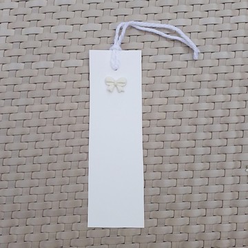 絲帶書籤 經典黑白配色 手工製作,採用白色紙張,頂部附有綁繩,可供您寫上祝福語。尺寸:5 x 16 公分
