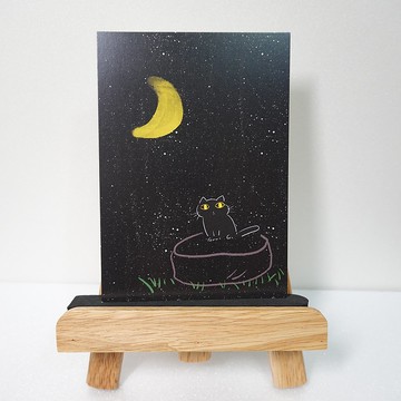 / 購買前注意事項!/基於環保和成本考量,單買一張明信片不寄送。購買2張以上明信片才寄送,也可以搭配其他不同款明信片喔。|雪銅紙明信片 - 夜晚有隻黑貓在石頭上沉思|設計:東東原創設計|材質:雪銅紙 |磅數:250g|尺寸:14.8 x 10.5 cm
