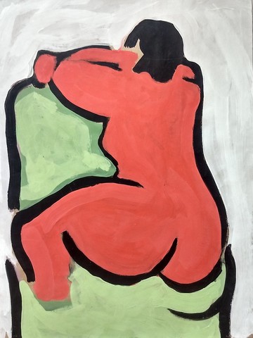 裸體女人背部壓克力畫,帶有美麗的景色藝術品