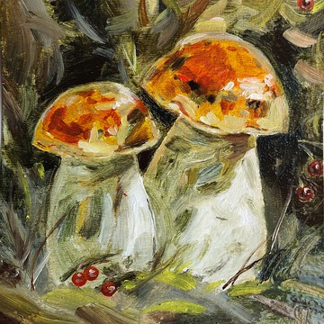 “蘑菇”,2023。原創油畫紙板15x15 厘米無框的包裝:藝術品將被仔細包裝以確保安全交付,並附有追踪號碼。請注意,任何繪畫的實際顏色可能會略有不同,具體取決於您的顯示器設置。如果您有任何疑問,請隨時給我留言。