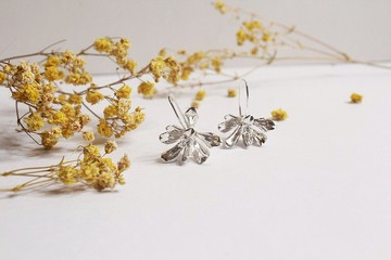 Leuce 鍍銀楊柳枝綻放白布花耳環