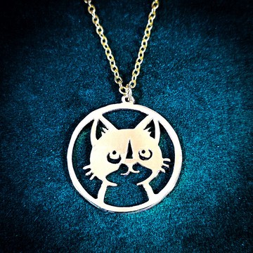 圓形貓咪造型墜飾。由我親手設計與製作,此墜飾以黃銅薄片手工鋸切,並施以銀質鍍層。您可選擇黃銅色或銀色兩種顏色。材質:鍍銀黃銅鍊長:16 英吋(若您偏好其他鍊長,請隨時與我聯繫)製造地/製程泰國製造