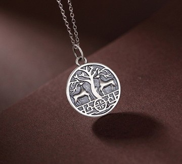 奔向幸福浮雕鹿希望樹吊墜項鍊無鏈復古