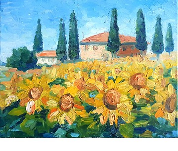 獨創堂藝術家手繪油畫作品,印象派油畫創作原作,藝術家油畫原作 40×50 cm手工繪製油畫,繪畫是獨一無二的,這不是印刷也不是複製,用畫筆和調色刀手工創作而成的。材料:油畫顏料,麻畫布及精緻木質框 準備發貨。 不需要框架。 運輸:發貨時附有跟踪編號的優質保護性包裝。 拉伸帆布上的原創油畫是您室內裝飾的絕妙裝飾,將補充您的繪畫收藏。 這幅山水畫在客廳、臥室、廚房都很棒。向日葵田畫布手繪是一份絕妙的禮物。以厚塗技術手繪,照片顯示紋理筆觸。正面明亮的畫面,營造出美妙的陽光心情。在室內,即使沒有框架,這幅畫也看起來很時尚。請注意,顯示的顏色可能因顯示器而異,但我保證顏色明亮且接近圖像。繪畫不需要框架。這幅畫是無框出售的,照片顯示了框架作為室內裝飾的一個例子。如果您想要這幅畫的不同尺寸,請與我聯繫,我將訂購這幅花卉畫。運輸:用氣泡包裝包裝和運輸,保護 + 盒子 + 保護包附帶跟踪。交貨時間取決於郵政服務的工作。商品發貨後,您將收到追踪編號。我會盡一切努力讓這幅畫以完美的狀態交付。看更多原創油畫:靜物、花卉、風景、航海、海景藝術品請訪問我的商店。看看我的商店,然後選擇您喜歡的畫作