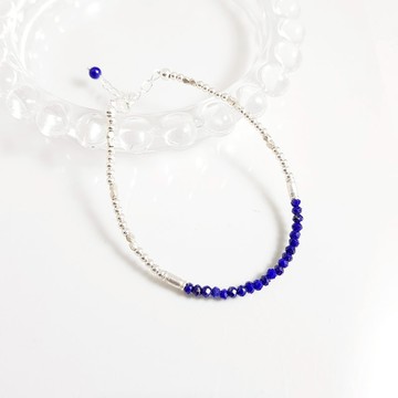 青金石〈Lapis Lazuli / ラピスラズリ〉其中含金黃色(黃鐵礦)或白色(方鈉石)的內涵物,各大古文明文化皆認為它是一種聖石。可以清徹思想集中注意力,消除負面能量。亦叫”請金石”, 能強化事業運, 招聚財富。此款手鍊的青金石是有多角面切割,在光線下更能展現多樣層次與光澤。銀〈Sterling Silver〉銀的能量與月亮相同,能安定人心、滋養靈魂、辟邪安神。古人說:「身戴白銀,健康富貴永相隨」。【商品說明】多角切割青金石〈Lapis Lazuli / ラピスラズリ〉:約長0.3公分銀珠: 約0.2公分材質:皆925純銀尺寸:依提供的 (1.實際手圍 與2.喜好鬆緊度) 客製化1.實際手圍量法:於手腕處用皮尺或繩線”緊貼手腕”繞一圈,拉直即可知道實際手圍長度。 手圍不等於鍊長,勿使用您其他手鍊長度做標準。2.喜好鬆緊度:A.貼手(服貼於手、略緊)B.合手(手鍊可些許滑動)C.寬鬆(可自由上下滑動)◆下單範例『手圍15。喜歡合手』◆尺寸若需超過18公分,請您同時加購以下品項https://www.pinkoi.com/product/Nu7lwTiW【使用保養】◆ 商品皆使用純銀與天然礦石,可帶著洗澡,但勿接觸硫磺泉◆ 商品皆附無毒拋光拭銀布,可去除氧化物及油垢,形成新的保護膜。切記~拭銀布不可水洗◆ 飾品收納,建議清潔完後再放回包裝內以避汗水殘留造成氧化【小提醒】拍攝光線與電腦銀幕設定差異,照片顏色與實品可能會有些微落差,天然水晶與礦石每顆皆顏色不同,也有些許冰裂紋、雲霧狀...等等天然特色,可接受再下訂唷~【產地/製造方式】產地台灣 手工製作