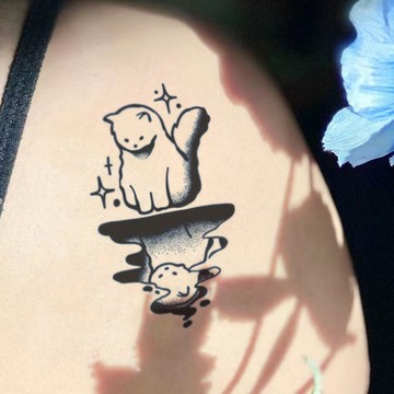 發2張【倒影貓咪】真實感半永久刺青圖案草本紋身貼仿真持久男女