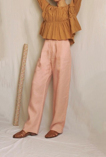 設計重點:可以從早夏一路穿到早秋的百搭長褲。雖然是用樸實無華的亞麻,但採用西裝褲寬褲的剪裁,可以輕鬆活動且不失專業,上班也可以穿。布料選用中磅的純亞麻,單層透氣不透光,雖然材質易皺,穿著需要整燙,但炎炎夏日就是需要回歸這種親膚又樸實的質地。溫柔的鮭魚粉給人帶來日常好心情,且意外的好搭配,哄哄妳夏季的莫名脾氣。高腰身無彈性,腰頭有腰帶穿環,褲管寬直筒,拉鏈+單扣穿脫,前方打活動摺,後方有雙口袋,雙側也挖口袋,整體版型俐落, 實穿性高。⊖ 採下單後製作零浪費模式, 我們需要2.2.5週工作天製作及出貨。顏色:鮭魚粉 ( 其他顏色,請私訊詢問色卡)材質:100%亞麻 ( 單層不透光,天然材質易皺,需整燙) 尺寸: XS-XL 。請按照尺寸表選擇最接近自己的量身尺寸。⊖ 腰部沒有彈性,所以尺寸表上的腰圍就是褲身腰頭的尺寸,如果介於兩尺寸間,建議拿較大的尺寸。⊖ 高腰圍建議照鏡子明顯凹陷最纖細處繞一圈即是,臀圍則是取臀部最豐滿處繞一圈,量取時皮尺可留一指空間,且確保可以正常吸吐氣。Model拍攝時的身高體重:163cm/47kg 三圍33/25/35(吋) 穿S 洗滌/保養說明:可裝袋機洗, 不機烘, 不浸泡。