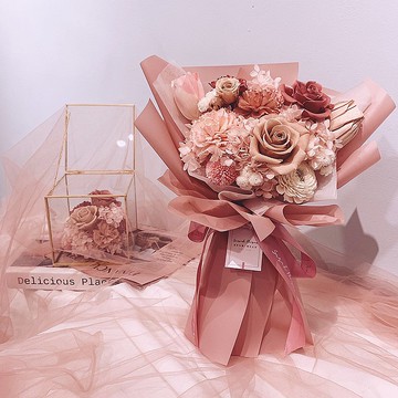 這是Sarah Floral在今年推出的母親節作品中,以新娘捧花級別設計的作品。朵朵綻放的永生花,停留在它最美麗的時刻,希望能用我的雙眼,記印下您每個笑逐顏開的瞬間,每每回憶起這些時光的剪影,彷彿時光倒流回到這一刻,我又再一次親眼見證您的燦爛笑容。用最有份量的花束,親手營造一個,與媽媽共同感動、擁有溫馨回憶的機會。【關於作品】觀賞期:二年至五年左右(妥善保存狀況下)作品尺寸:花面直徑20cm X 整體高度30cm (±3cm)作品內容:康乃馨*3、進口永生玫瑰花 大*2小*1(搭配索拉花、乾燥花&不凋花材)、精美禮袋*1 暖心服務:◆ 客製調香索拉花亦有擴香功能,製作時可客製諮詢,為您點上特調香精,增添花束香氣◇ 性格配色諮詢可依照對於贈禮對象的描述,做性格配色諮詢,客製獨一無二的專屬花束◆ 免費親筆代寫80字內卡片專業文案編排+手寫文字,確實傳遞您的心意 *下單完成訂購之作品 (包含溝通完善客製細節)手工製作耗時約為3天,接單後會以排單的順序製作,若提早完成會盡快寄出,敬請期待及感謝您的耐心等候 【保存方式】▲請放在乾燥通風的地方,避免陽光直射▲花朵若沾染灰塵雜物,建議使用吹風機冷風吹拂清理,或是軟刷輕刷即可 【購前需知】▲花材皆為季節性採購,若遇短缺,會在不影響色系和整體樣貌的狀況下,以相似花材做設計搭配▲作品皆為純手工製作後實品拍攝,故花材和包裝之成品,無法保證與照片100%相同,請以實物為準,購買前請先詳閱「關於作品」與「購前需知」,避免「與想像不符」之情況發生,感謝您的體諒與配合▲花禮寄送皆為紙箱包裝,內層多加纏繞緩衝氣泡布防護,會特別告知物流人員小心輕放;若仍對於超商運送品質有疑慮者,建議您選擇宅配到府,較為安心▲乾燥花、永生花為天然花材,運送時難免會因碰撞有少許掉落,Sarah會盡力妥善包裝、保護商品;由於乾燥花本身脆弱,開箱時難免會發現少許花屑掉落,皆在合理範圍內,完美主義者請考慮仔細再下單▲購買後若有任何問題,都非常歡迎來訊聯繫!我們將盡力提供售後服務,希望讓每位收到Sarah作品的顧客,都能感受到滿滿的幸福,這都是我們出發的動力及莫大的榮幸 【常見 問與答】▲我有急件或大量訂製的需求!歡迎直接聯繫我們,Sarah Floral將盡力提供最佳服務方案▲請問有提供其他 花藝服務 或 作品參考 嗎?目前除了花藝作品外,也提供 花藝手作教室/居家花藝佈置/商業空間設計/大型人造草牆/客製化文創商品,更詳盡的資訊歡迎直接聯絡我們,或者追蹤Instagram:sarahfioral.2020 觀看作品記錄▲永生花/不凋花&乾燥花 該如何保存呢?花材經特殊加工不需澆水和日曬,應避免過於潮濕或高溫陽光直射,保存良好的永生花/不凋花,觀賞期可長達2-5年左右;乾燥花觀賞期(視花種不同),可達半年至數年▲永生花/不凋花&乾燥花 是鮮花嗎?- 永生花/不凋花永生花以真實的新鮮花材,經由特殊手法加工製成,故保有鮮花的水嫩質感,卻能免除花粉過敏或蟲害困擾,Sarah Floral更是不惜下重金從日本進口永生花材,相較市面上同性質花藝商品,更延長作品觀賞期及提升品質- 乾燥花乾燥花是鮮花自然乾燥後的產物,隨著水分揮發、花形縮小,實體質地脆硬且易掉落,但仍散發出天然花材的香氣,色澤則會因花種及時間,而有不同程度的褪色,亦會隨著時間自然風化,皆屬正常現象