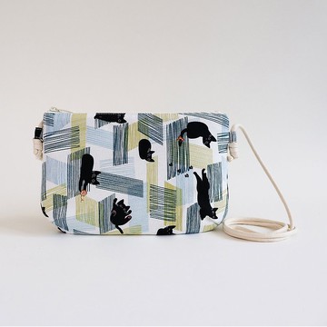 手工車縫製淘氣小黑貓隨身小斜肩背布包