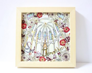 客人Ling 押花框畫訂造 致送好友結婚賀禮(25 x 25 cm)/這是祝福在伯大尼教堂結婚行禮的Sylvia & Jonathan。因此按客人要求,背景以水彩繪畫出伯大尼教堂。/Ling喜歡花材以紅白色系設計,我特選紅色的日本小玫瑰花、淡白紫紅色的星芹花為主角花;草也紅白相依,紅為唐松草,白為白蔓妙。在不同小角落我放置圓圓可愛的蓮梗圈,暗地裡祝福他們連生貴子呵!教堂窗花則貼上零碎的黃蕾絲花,希望盡量打造出那彩畫玻璃的感覺~整個押花組合,感覺很高貴華麗又浪漫啊~希望這幅框畫陪伴這對新人長長久久!幸福美滿!產地/製造方式香港