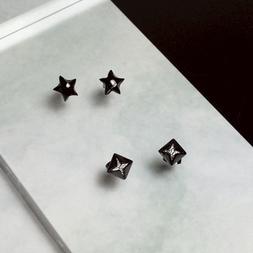 1. 黑鑽石耳環: 從不同角度觀看耳環都能映照出不同層次的光與影,喜歡搭配黑、白、灰的人萬勿錯過啊!鑽石形尺寸: 7x7 mm物料: 不銹鋼針(防敏感)2. 星星耳環:每一顆幸運星星都經人手悉心摺疊,表面再塗上搪瓷。讓耳環變得非常堅固而且完全防水。祝願每顆幸運星都為您帶來好運!材質: 選自倫敦的光面黑色紙表面: 搪瓷尺寸: ~10x10 mm