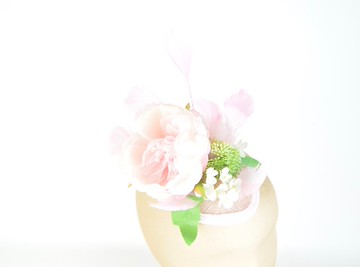 造型牡丹絲花、羽毛與薄紗頭飾髮飾 (粉嫩色)