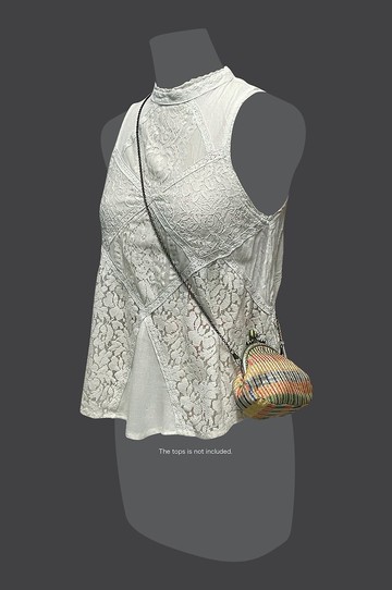 - 9cm 寬口金包(口金包扣位寬度)- 尺寸:13 (W) * 13 (H) * 5 (D) cm- 金色織多色條子印度布- 配置 金屬鏈 ;鏈子長度 (包括袋扣): 103cm**不包括上衣!