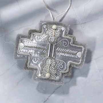 變形十字裝飾品 No.1, 灰×銀, 珠飾刺繡×緞面, 獨一無二・個性・聖誕節適用