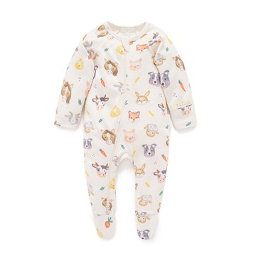 澳洲Purebaby有機棉嬰兒包腳連身衣/新生兒 包屁衣 農場動物