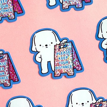 閃亮鏤空貼紙 - 請保持距離☆ 數量:1 張☆ 尺寸:2.5 英吋☆ 材質:防水閃亮貼紙