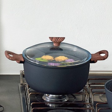 【Sambonet】 RockNRose 不沾鍋雙耳湯鍋24cm-附蓋-岩石黑