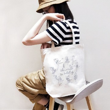 伊之珂芭蕾 | Q 版芭蕾群英 輕帆布 購物提袋 ( 米白 )