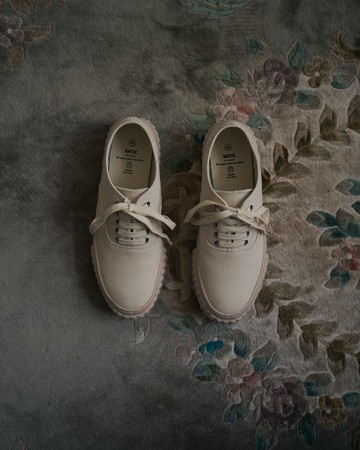 【閃耀的白色!】經典設計與真皮的頂級質感!EMA 運動鞋 / 珍珠白 x 米色麂皮 廣告文案