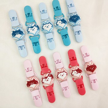 【5入特價組】貓咪青海波-4色可選。手帕夾 短版奶嘴鏈