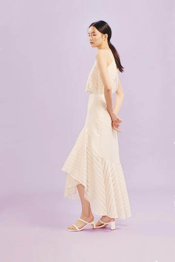 下擺米條荷葉長裙