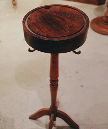 這款1940年代比利時出品的古典木架,散發著濃厚的復古氣息。其線條優雅流暢,工藝細膩考究,圓形木座穩重而精緻,底部巧妙設計了兩個掛勾,為實用性增添一絲靈動。不僅能作為擺設,亦可用來懸掛輕便物品,結合功能與美感於一身。