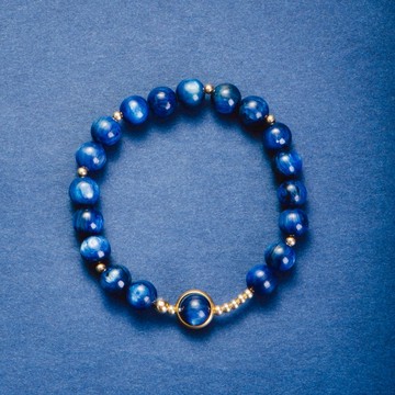 藍晶石手鍊設計 | 14K包金 | 天然水晶礦石設計手鍊 | 療癒【藍晶石 Kyanite】藍晶石屬於三斜晶系(Triclinic)的晶石,擁有最柔軟而且深度的療癒能力,是優秀的冥想石。它的效力溫和而強大,有著柔軟的療癒能量讓你面對靈魂深處的傷痕和印記。藍晶石對應人體的眉心輪和喉輪,有助於人們的自我表達與交流,有助靜坐冥想。對身處迷茫中的人,藍晶石有助讓人解決迷惑,從物質世界的意識狀態跳躍到精神世界,消除恐懼、怒氣、挫折與壓力。--------------------------------------------------------------------**【 材質 | Material 】*** 巴西 5A級 藍晶石 約8mm * 14K包金隔珠* 14K鍍金環* 日本彈力絲線手工設計製作--------------------------------------------------------------------**【客製化 | Customisation 】**925純銀字母隔珠https://www.pinkoi.com/product/DjF5yqLV925純銀字母吊墜https://hk.pinkoi.com/product/urLNfZGC14K包金英文字母吊墜https://www.pinkoi.com/product/7urmdu8nhttps://live.staticflickr.com/65535/40699068483_2622f7258c_z.jpg客製化刻字吊牌https://www.pinkoi.com/product/S7SMk3U5https://c1.staticflickr.com/5/4832/44368961550_c85928c670_n.jpg--------------------------------------------------------------------**【 手圍尺寸 | Size 】**請用軟尺在手腕最細處,不鬆不緊地貼著手腕繞一圈,量度得出您手腕的圍度,__無需自己預留空間__。--------------------------------------------------------------------**【 包裝 | Packaging 】*** 禮盒* 白水晶消磁石* 保養卡- 禮盒顏色隨機寄出,如需指定顏色請告訴我們- 擦銀布只限含純銀配件的商品https://c2.staticflickr.com/2/1924/44327060135_d3849f9217_c.jpg--------------------------------------------------------------------【 物流 | Shipping 】【香港、澳門、台灣、大陸地區】:順豐寄出,寄出後預計約5天送達。_香港收貨地址香港的客人,請提供就近的順豐服務站或者順豐智能櫃的地址和編號,可以減免順豐額外的派送費用,收貨速度也會較快 【其他國際地區】1. 默認選用國際平郵掛號,預計2-4星期送達(如遇海關清關檢查,則需要更長時間)2. 如需改用DHL(約5-9日送達),請聯絡我們補付運費差價。--------------------------------------------------------------------**【 使用和保養 】**1. 水晶來自天然,每顆都有不同的棉絮、冰裂、雜質等情況,也有無法打磨掉的小瑕疵等,這些特徵都成為了鑑定水晶是否天然最直接的方法。我們製作時,會對水晶進行篩選的工序,去除品相不好的水晶珠,但世上沒有完美無暇的天然水晶。2. 由於產品含有銀製配件,請避免洗澡、游泳、泡溫泉時配戴,取下後請回防塵袋內保存。3. Pink Laboratory 採用國際標準的925銀飾,如銀飾與空氣、水份、皮膚接觸一段時間而有輕微氧化情況,可用擦銀上光布輕輕擦拭,便可回復光澤。--------------------------------------------------------------------**【 水晶淨化 】**水晶來自天然,有其獨特的磁場和能量。在收到產品後,可以將手鍊先放在我們提供的消磁石內進行淨化和消磁(4小時以上較佳)。淨化後,水晶能量更易與配戴者的磁場達到共鳴,強化正面的能量。如配戴水晶手鍊去過一些負能量的地方,例如醫院、墳場等,建議回家進行消磁,去除水晶所接觸到的負能量。--------------------------------------------------------------------**【 Pink Laboratory 粉紅製造 】**https://farm8.staticflickr.com/7876/40545473613_2577c3ee6e.jpg《品牌理念》人生在世,不論是城市裡的上班族,還是草原上的牧民,總有各自需要面對的人生難題,都是修行,誰都逃不掉。我們總想追逐快樂,卻在得失中忘記自己,生活中的起起落落,才逐漸明白心靈的平靜比快樂更重要。學習去修一顆平和柔軟的心,接受曾經的失敗,原諒曾受過的傷,跟自己和解,不要急躁,慢慢來,好好的愛自己,一切都會過去的。https://farm8.staticflickr.com/7912/33634768898_38fcf3db66.jpg《關於 Pink Laboratory》天然石有其獨特的能量、渾然天成的魅力,我們在高原的淨土,想用設計帶一份寧靜給人們,把天然之美帶入生活。讓我們一起學習,好好愛自己,心平氣和地在生命中修行。也在日復日的生活裡,保留一點浪漫和詩意。https://farm8.staticflickr.com/7903/46787618114_830de8200a.jpghttps://farm8.staticflickr.com/7884/47511453131_6f8b795bae.jpg《關於設計師》土生土長香港女生,建築系畢業後旅居藏區7年。在地成立獨立設計工作室,結合傳統文化和現代審美,努力去做好的設計,從攝影、明信片、伴手禮,到旅館、餐廳、馬幫,曾被《經濟日報》《明報》《旅讀中國OR》《中國旅遊》等多家香港、台灣媒體報導。https://farm8.staticflickr.com/7805/46787606924_affa2b27f9_n.jpghttps://farm8.staticflickr.com/7856/46596042105_0a55fb37eb.jpghttps://farm2.staticflickr.com/1924/30298526407_1f0bc58bf5.jpg