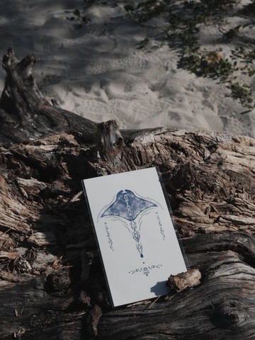 Ancient Sea Siren | Manta Ray | Tattoo- The Atlantis( 草本半永久)Feel the imprint of the sea~旅程上遇到任何困難都要記得那一刻的你靜下來用心感受用心聆聽被指引的道路終將顯現我們都會在遠方祝福著你琉璃永遠為你而守候魔鬼魚| The Soul Whale 神諭卡🧚🏻♂️ 在這片蔚藍星球上,我們的身體就是神聖的殿堂,於海洋與星空之間,讓我們留下獨特的光芒一份美麗的印記✨🧘🏽~~~~我們所設計的紋身都是草本半永久款🌸由花果實提取物聚合圖層,通過栀子花果實萃取物跟皮膚角質層起反應顯深藍刺青色,顯色後媲美真紋身能保持10-15日(根據個人皮膚代謝慢慢消失)用法1. 擦拭乾淨要貼的皮膚把要貼的皮膚擦拭乾淨,確保無水、無汗揭開表面的透明膜。2.對好要貼的位置把有印刷的圖案朝外,有膠的透明一面朝向皮膚,按印刷圖案對好位置後輕輕按壓,讓貼紙和皮膚完全粘合。3.用清水浸透貼紙用清水或濕布把貼紙浸透,輕輕按壓二十秒左右,注意不要讓膠層的圖案有移位。4. 按壓後揭開底紙輕輕按壓後揭開底紙,留下陰影層,擦乾多餘水分,剛貼好的果汁紋身貼是半透明的,三小時內盡量不要碰水或摩擦,圖案能更加持久。5. 等待圖案顯色圖案貼好後4-24小時逐漸顯色,具體顯色時間根據個人皮膚代謝會有不同,用保鮮膜裹住圖案會加速圖案顯色。6. 24-72小時顯色完成24-48小時左右顯色完成,效果可以持續10-15天,再根據個人皮膚代謝慢慢消失,防水、防汗、防搓洗。我們的小貼士 :)這種紋身貼剛貼上去是半透明的,4-48小時逐漸顯色,剛貼上3小時內儘量避免淋水和摩擦,以免潤染;草本紋身貼貼好後儘量避免跟其他皮膚長時間接觸,特別是晚上睡覺的時候別枕在頭上或者臉上,以免潤染.草本紋身貼貼好乾爽後可以用保鮮膜纏繞,會加速顯色時間;草本紋身貼不能馬上去除。尺寸12X7cm * 建議貼在前臂/腳腕