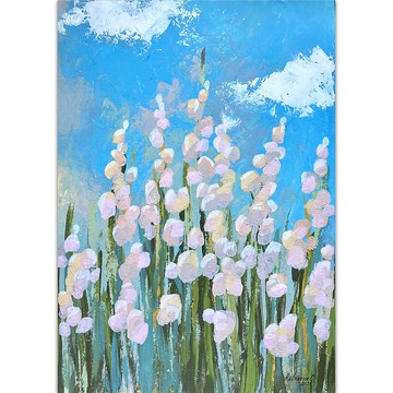 花畫 夏季 原創藝術 舒緩牆藝術 垂直藝術品 藍色藝術