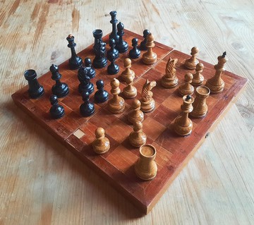 舊狀況。由木頭製成。板 30 厘米,電池 33 毫米。國王 77 毫米,兵 40 毫米重量 700 克。