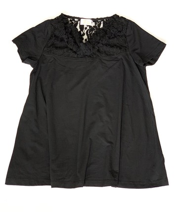 黑色領口蕾絲短袖上衣