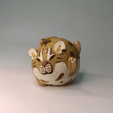**石虎又名豹貓、錢貓,****是台灣僅存的野生貓科動物,****特徵是~兩眼間有白色條紋往頭頂延伸,****耳背有~黑底白斑點,****全身充滿著如錢幣般的斑紋,****扭轉的錢貓,象徵著滾動活化的財富!****本作品適合擺放在櫥窗、玄關、書架等.....,****自用送禮兩相宜~****(出貨商品=照片展示商品)**__尺寸: 10.2 x 11 x 8.5 cm__ __經攝氏1235度燒成後,表面質感呈現類似石質的觸感。____因窯燒,手工測量,尺寸會有差異,介意者請勿選購____清潔時,只要用水沖一沖,放乾後便亮麗如新,無需擦拭__ (我們很樂意回答您的問題)