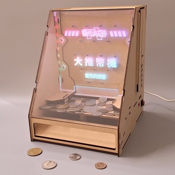 📙需要統編的買家只要在訂單備註留言即可📙🙏 組裝前需知 🙏這種細緻的手工藝品組裝,非一般的積木組裝,也並非光憑直覺即能組裝,多看幾遍組裝影片或說明書,就能大大的提高組裝成功率,拆卸零件木板時也請小心慢做,才能享受DIY手作工藝品所帶來的樂趣。🔔 溫馨小提醒 🔔木板厚度有10%的誤差,因此有時可能超出設計範圍而導致難以組裝。建議使用內附的砂紙進行磨薄和同時進行組裝來解決問題。如果問題仍無法解決,請私訊我們,切勿強行組裝或使用不當工具,以免造成損壞。【商品說明】打造你的酷弦聲光影音大推幣機 — 把街機體驗帶回家!這款 「大推幣機聲光科技版」 在保留傳統木作機械趣味的基礎上,新增壓克力導光面板與內建聲音和光影控制模組。遊戲啟動時,導光壓克力會顯示出柔和數種光影變化,配合循環背景音效,讓每一次推幣都充滿臨場感與成就感。無論當成親子手作、朋友聚會小遊戲,或做為桌面展示,它都兼具互動與美觀。【主要特色】壓克力導光效果:使用 3mm 光學壓克力導光片,提升光暈均勻度與視覺層次。背景音效模組:遊戲過程會有預設背景音效(音量可調/可靜音)。教學支援:影片式組裝教學(QR code),步驟分段清楚,新手也能完成。安全材質:木板採天然無毒紐西蘭密集板,壓克力邊緣已考量倒角處理(使用時仍請小心)。適合誰買?親子家庭、手作愛好者、桌遊/派對增添互動、文青居家擺飾需求者、社群團購主。【材質 / 尺寸 / 適用年齡】木板材質:紐西蘭新松密集板(天然無毒)壓克力:3mm(外罩) + 3mm內面板導光片(呈光影效果)外觀尺寸:約 23cm (長) × 19cm (寬) × 26cm (高)(實際以實物為主)建議年齡:12 歲以上(12 歲以下需家長陪同)組裝時間:約 2~ 3 小時(視經驗與細心程度)難易度:⭐⭐⭐⭐⭐(相較普通版多了電子與導光件,需多一點耐心)【組裝前注意事項】觀看教學影片:請先完整看一次影片再開始組裝,能大量降低失誤。壓克力保護膜:組裝前請先撕掉壓克力保護膜(撕膜後再裝)以免留下氣泡或指紋,可沾點水較容易撕。零件卡合:若卡合過緊請用內附砂紙磨薄,切勿暴力強推以免卡榫損壞。電子模組:模組接線部份請依組裝教學影片操作;如非熟悉電性者,建議由成人協助。遇到問題:請先拍照/錄影並私訊客服,我們會協助判斷並提供處理方式(可保留零件以便判斷)。【發貨清單】✅ 木板零件 x16✅ 3mm 壓克力外罩 x 1(保護膜請先撕)✅ 3mm 壓克力導光片 x 1(保護膜請先撕,呈光影效果)✅ LED 可程式光源燈帶 x 2✅ 特製PCB主板 x 1 (含馬達)✅ 喇叭 x 1✅ 無段按鈕 x 1✅ 馬達螺絲 M3*8自攻螺絲 x 2✅ 馬達螺絲 M3*10圓頭螺絲 x 20+2(備用)✅ 馬達螺絲 M3*4圓頭螺絲 x 8✅ 砂紙 x 1✅ 十字起子 x 1✅ 5ml 保利龍膠水 x 1✅ 濕紙巾 x 1✅ TYPE C線 x 1