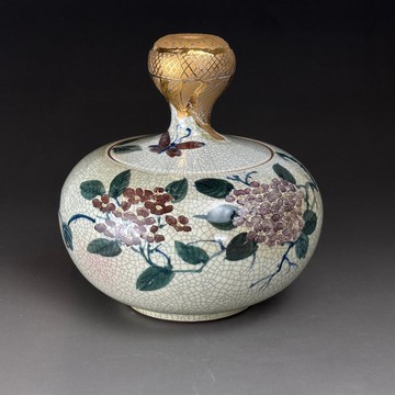 許旭倫 手繪冰裂描金茶葉罐 描金聚寶盆 半斤